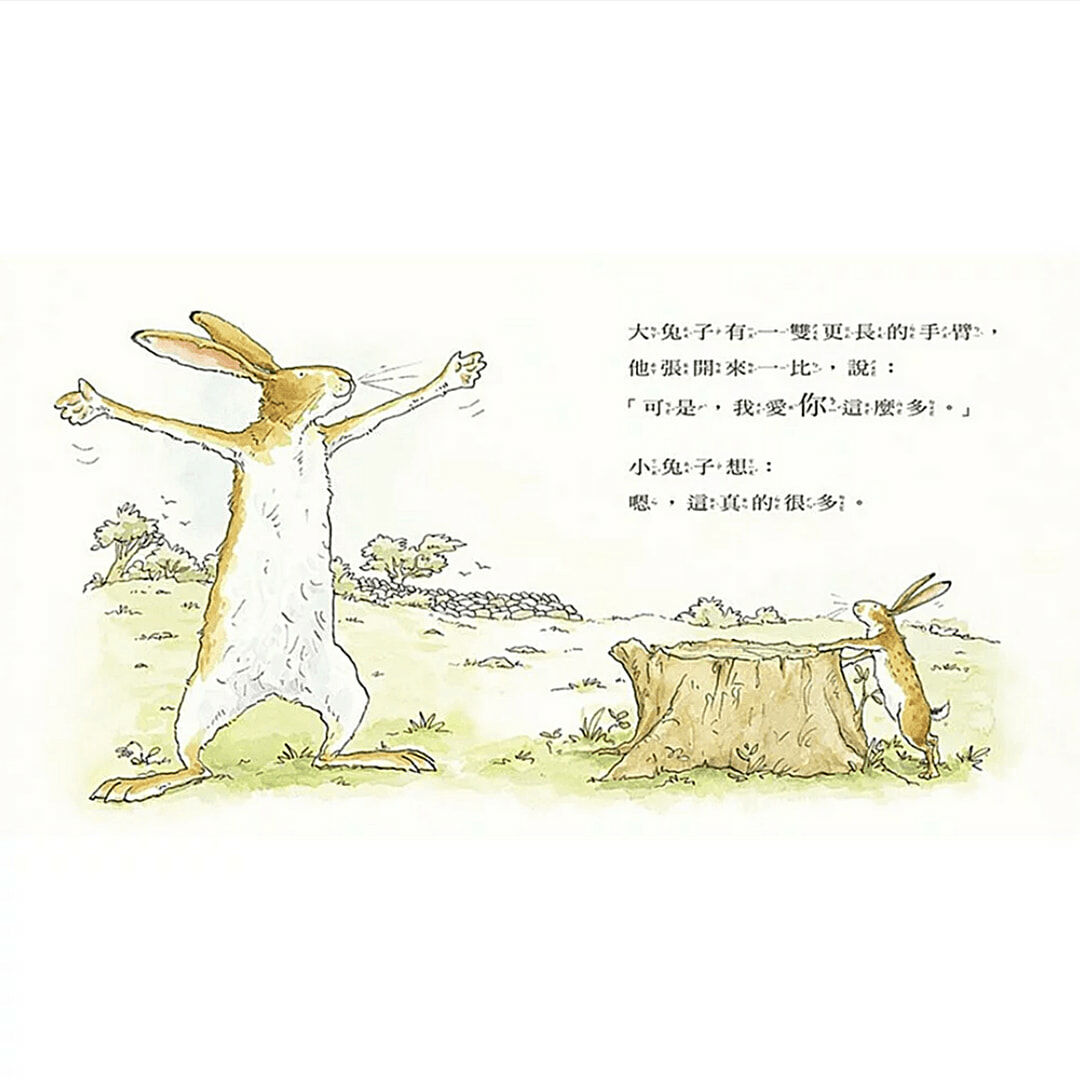 小兔子跟大兔子說:「猜猜我有多愛你。」