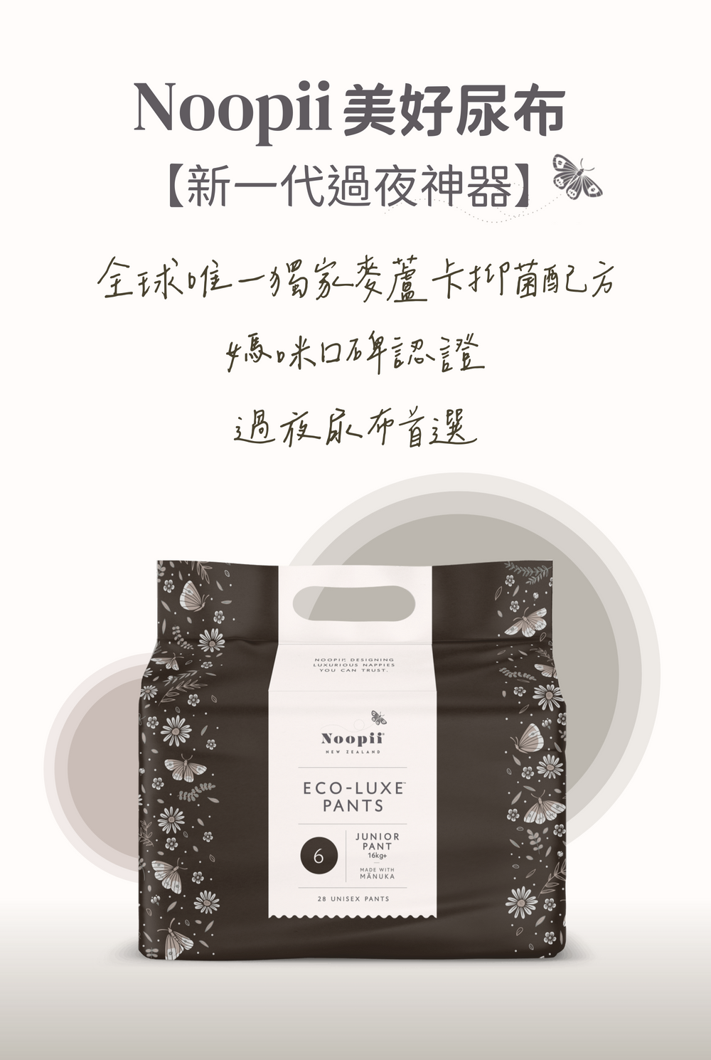 全球獨家添加麥蘆卡(Manuka)純露,搭配超吸水透氣材質,幫助寶寶遠離紅屁屁!