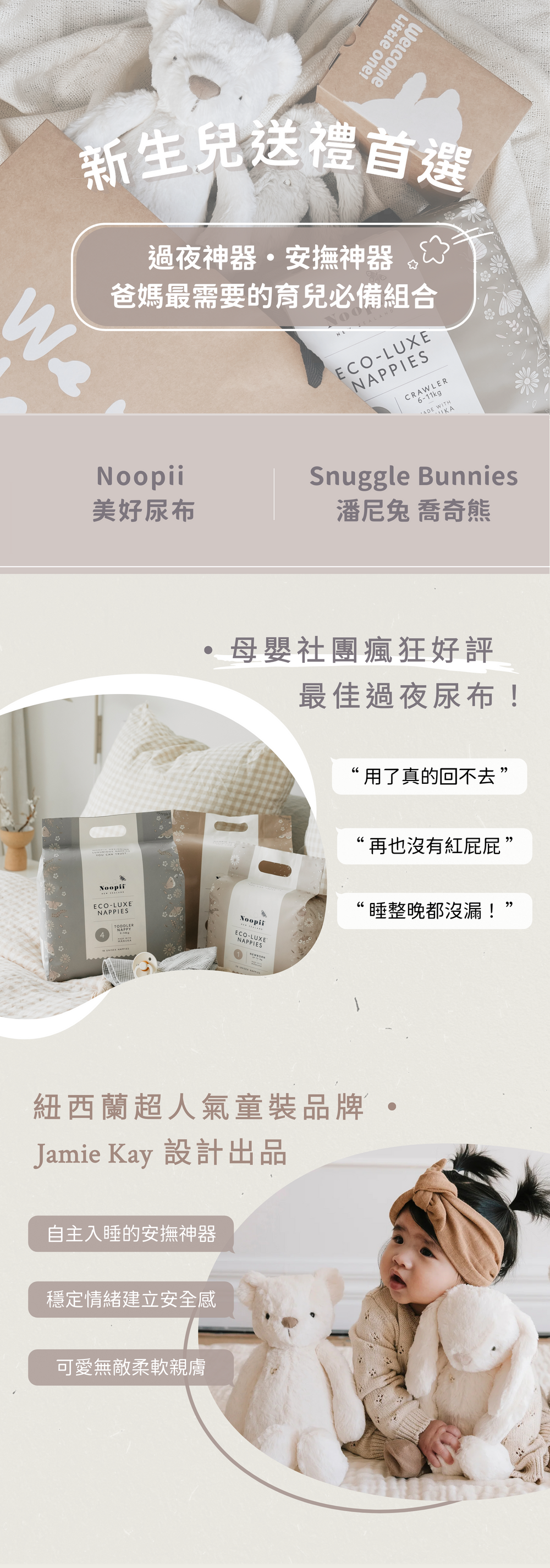 網路瘋傳最佳過夜尿布Noopii美好尿布+Snuggle Bunnies安撫玩偶,絕對是爸媽最需要的育兒質感好禮