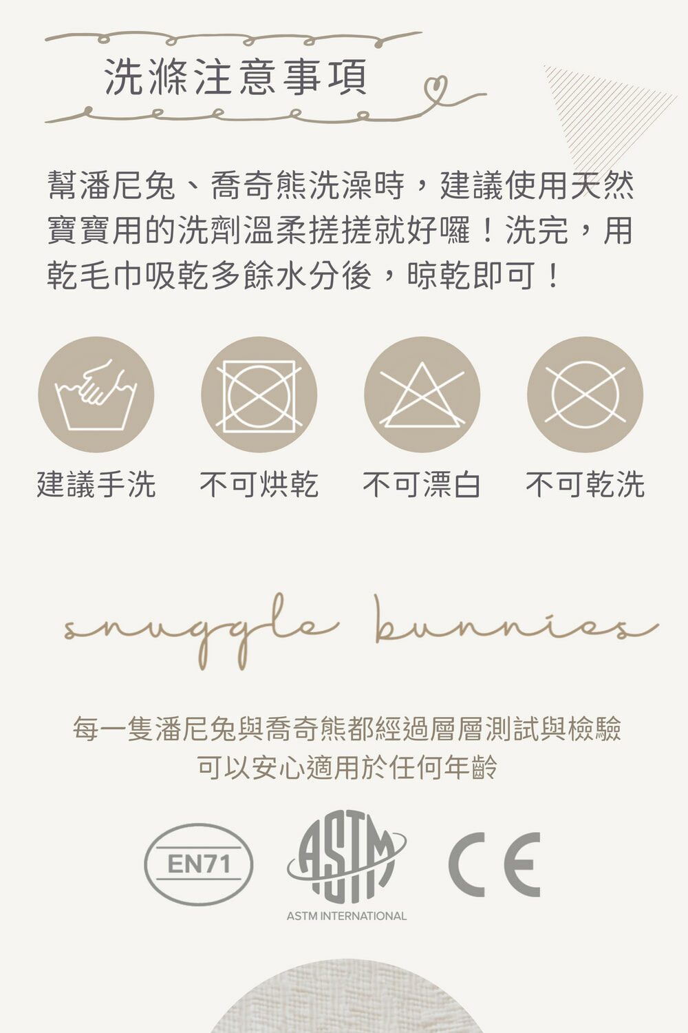 –通過歐盟 EN71、歐洲產品品質認證 CE 標章,與美國 ASTM 檢驗規範與國內玩具商檢,提供寶寶最安全的陪伴